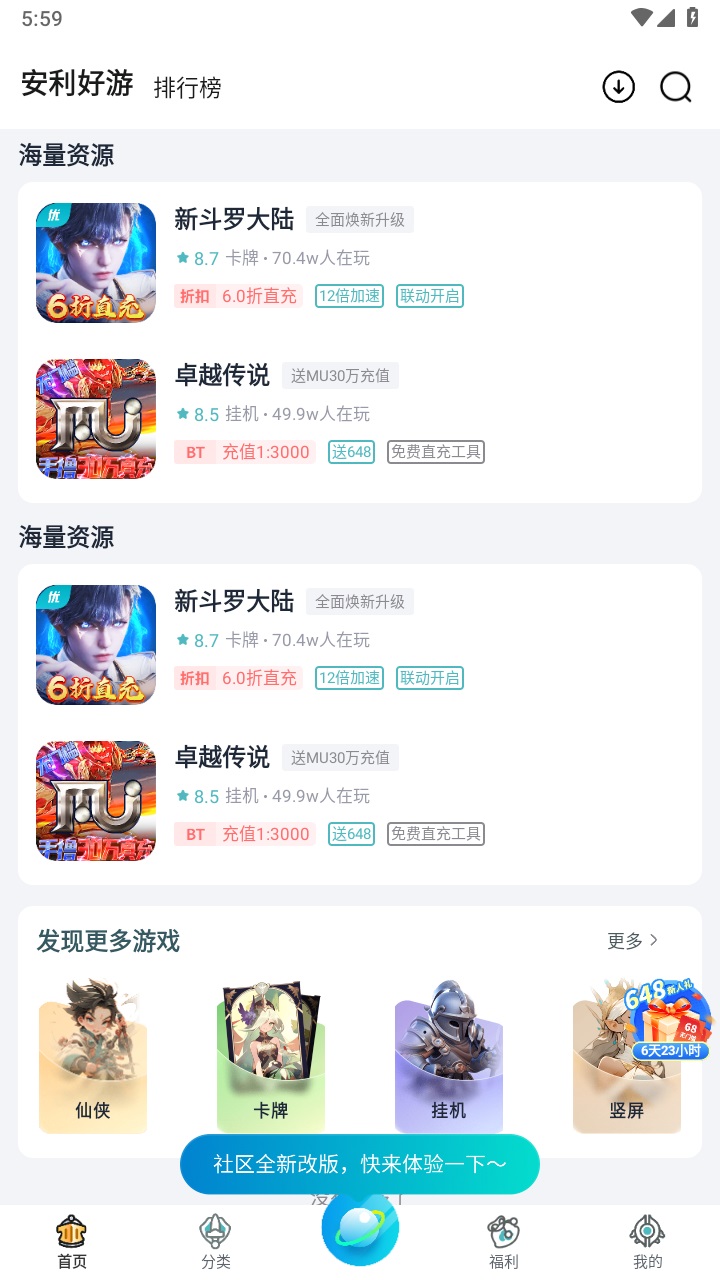 ·找到自己想玩的游戏资源,点击下载即可畅玩;