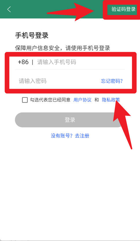 1、在登录页面,用户可以通过输入手机号和密码完成账号登录,也能选择验证码快捷登录方式,保证操作的便捷性与安全性。