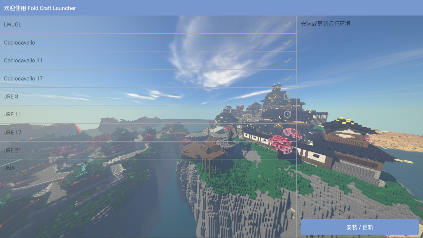 1.首次进入FCL启动器,一定要安装或更新运行环境