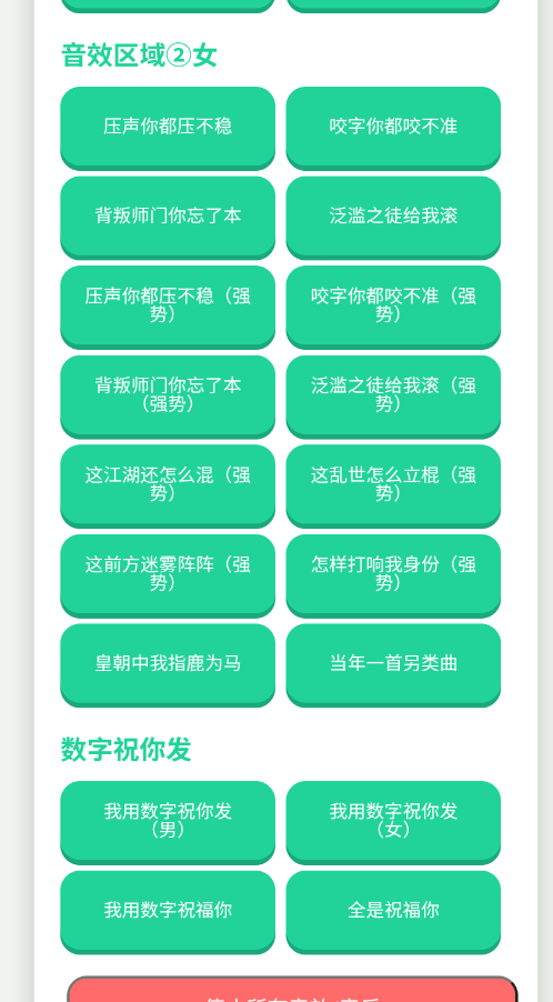 2.点击任意音效条目,系统将立即播放对应语音,支持单次播放或循环试听;