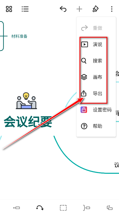 8.可以进行演说预览、画布、导出等功能。比如小编点击导出。