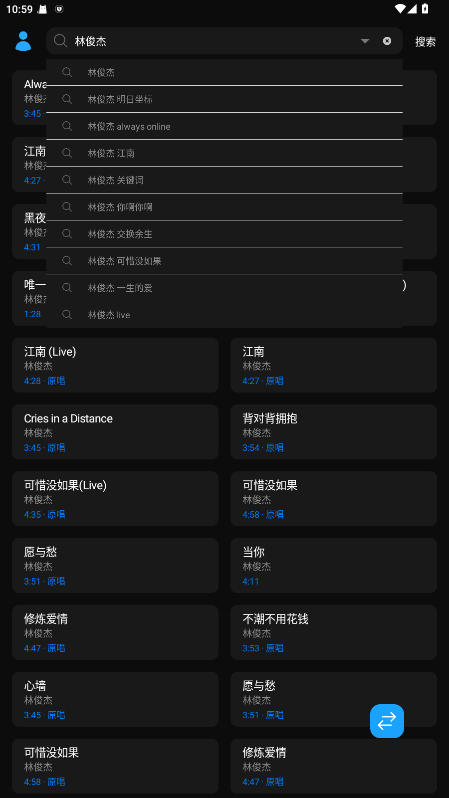 3.设置好之后回到首页,在搜索框输入你需要下载的音乐或者是歌手名称。