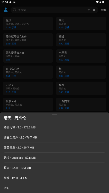 5.点击你需要下载的音质,即可把相对应音质的音乐下载到手机上保存。