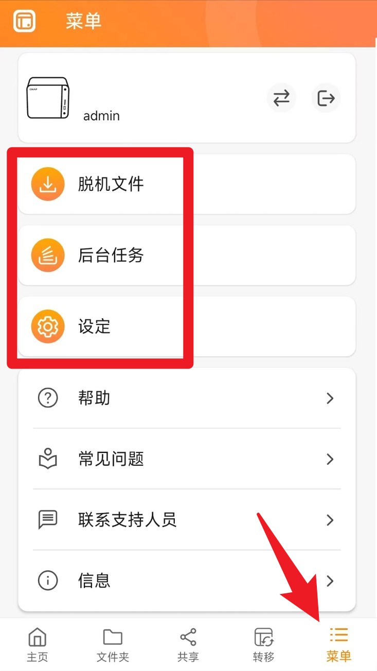 5. 点击下方「菜单」进入更多功能设定,包含脱机文件、后台任务、设置选项等,可依使用情境进行自定义操作管理。