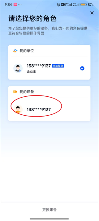 4、这里就可以看到不同的模式了,一个企业模式,一个个人模式,随后点击相应转换的模式。