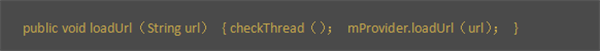 这个构造函数会调用另外一个成员函数ensureProviderCreated()确保Chromium动态库已经加载。在Chromium动态库已经加载的情况下,WebView类的成员函数ensureProviderCreated还会创建一个WebViewProvider对象,并且保存在成员变量mProvider中。这个WebViewProvider其实才是真正用来实现WebView的功能的幕后大佬。上诉那些Android WebView主要的方式基本都是通过mProvider来实现的,例如loadUrl(String url)等方法。