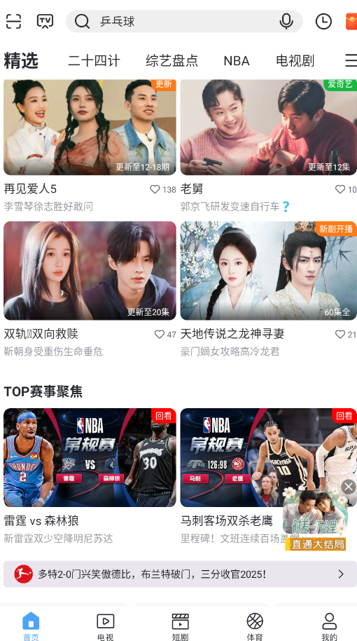 咪咕视频爱看版(又称咪咕爱看、咪咕爱看视频)是体育迷的观赛首选!nba、CBA、英超、西甲、德甲、意甲、法甲、中超、亚冠、UFC、WTT、网球、LPL、KPL、和平精英等全球热门赛事火热直播中,各路豪强巅峰对决,精彩不容错过!搭配专业大咖实时解说、4K超高清画质与全程免广告体验,更有专属流量福利助你畅看不停。锁定咪咕视频爱看版,赛场激情,一手掌握!