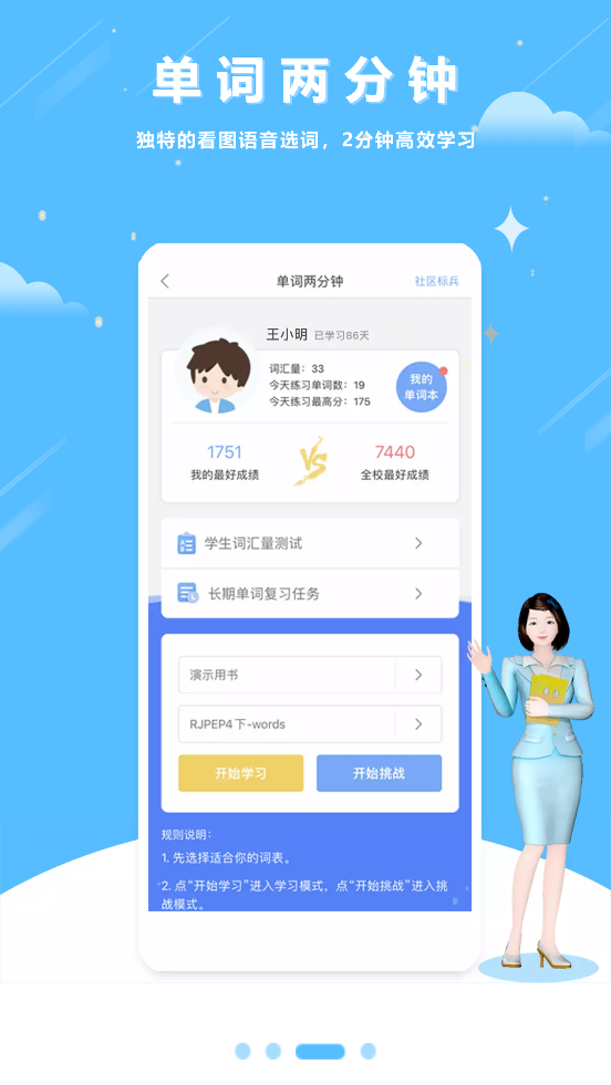 趣味竞赛活动:内置单词达人、配音大赛等互动环节,通过游戏化竞争机制激发学生的学习热情。