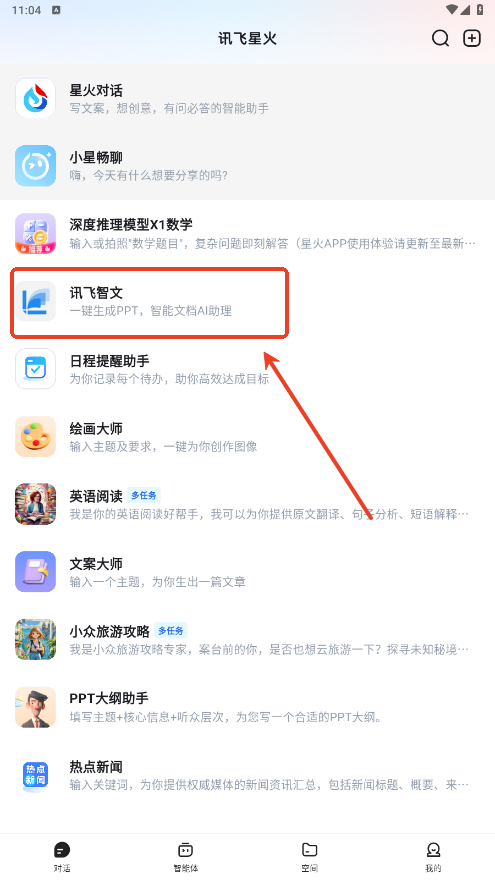 1、在讯飞星火APP中,可以点击右上角的图标来进入历史记录页面。