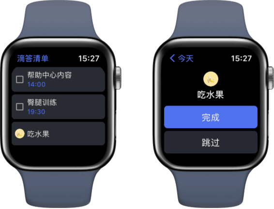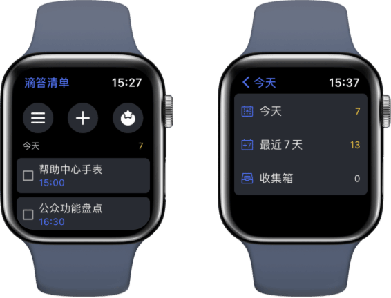 目前支持在手表中快速查看「今天」「最近7天」中的任务。