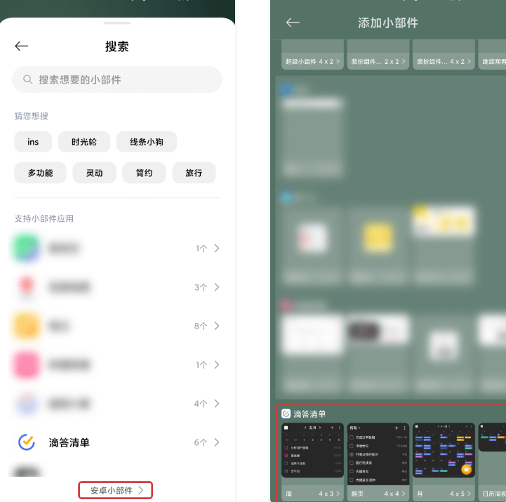 找到「滴答清单」,选择需要的小部件,点击即可添加成功。