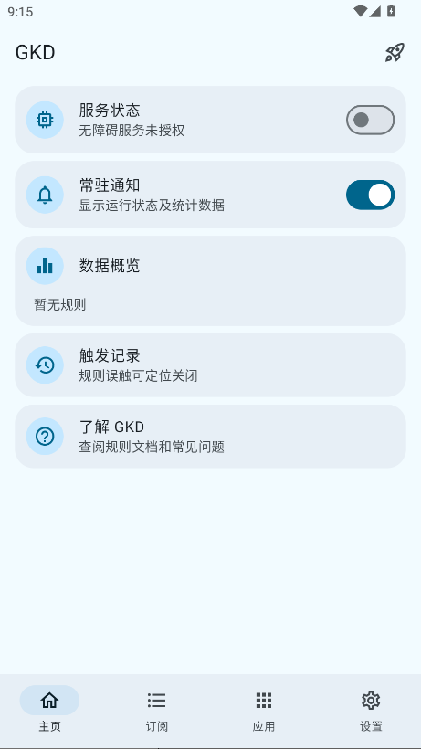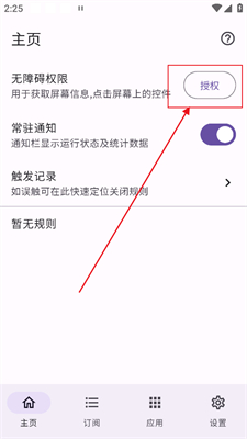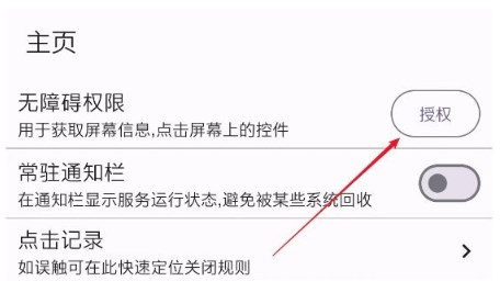 第一次打开需要在主页开启“无障碍权限授权”