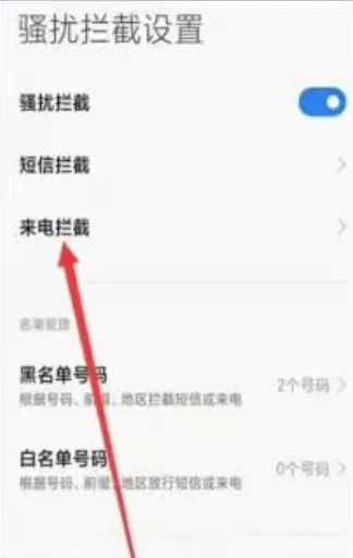 第四步:在骚扰拦截中选择【来电拦截】,点击进入。