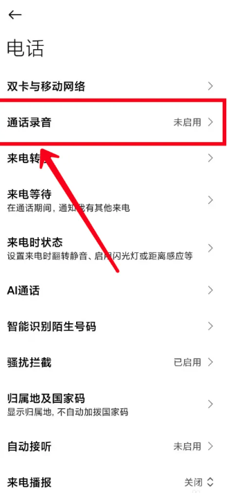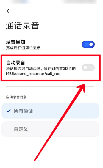 然后在通话录音的页面,将【自动录音】右侧的开关开启即可。