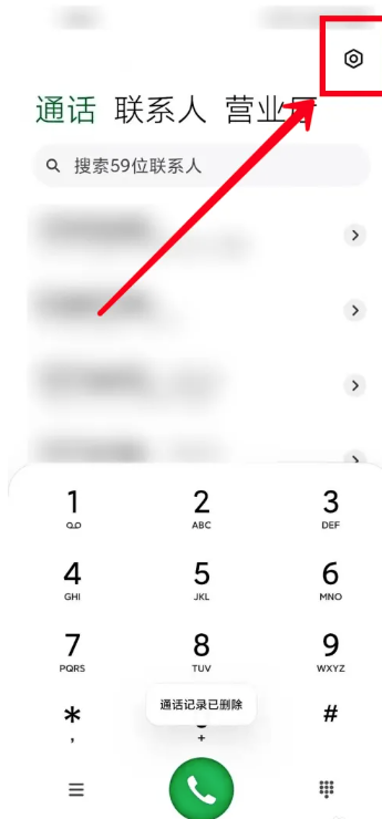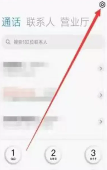 打开小米手机中的电话页面,点击右上角的【设置】图标。