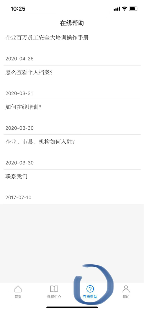 点击”我的”进入个人中心可以查看我所在的培训、我的考试、我的课程以及进行修改密码、修改个人信息等操作。