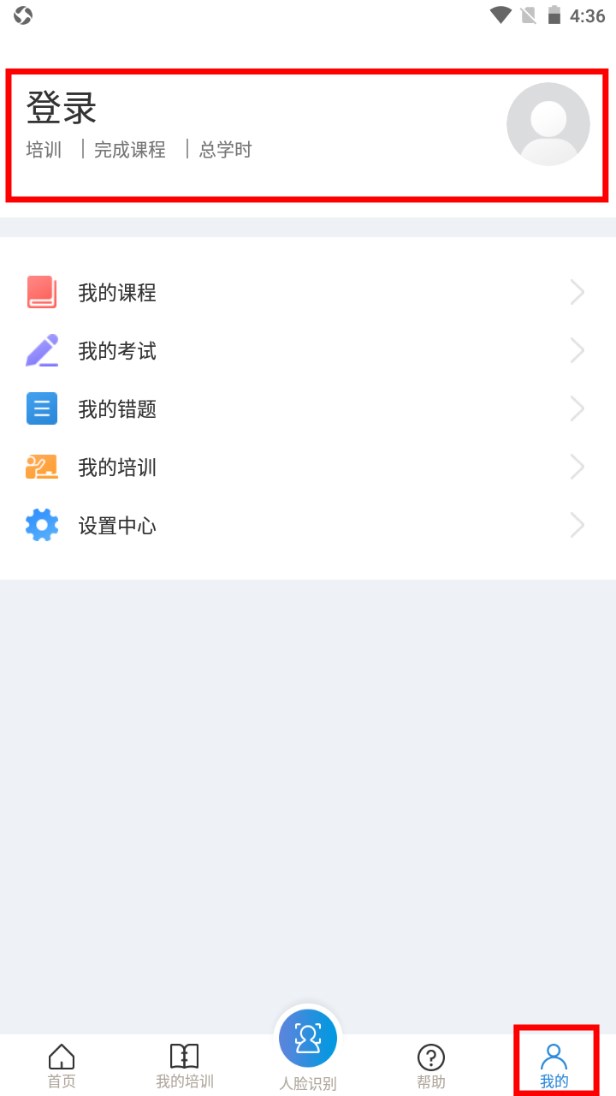 首次登录用户会强制录入人脸,用于后期看课、考试等功能人脸识别。