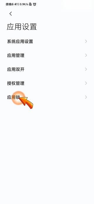 2、打开应用设置点击应用锁功能进入。