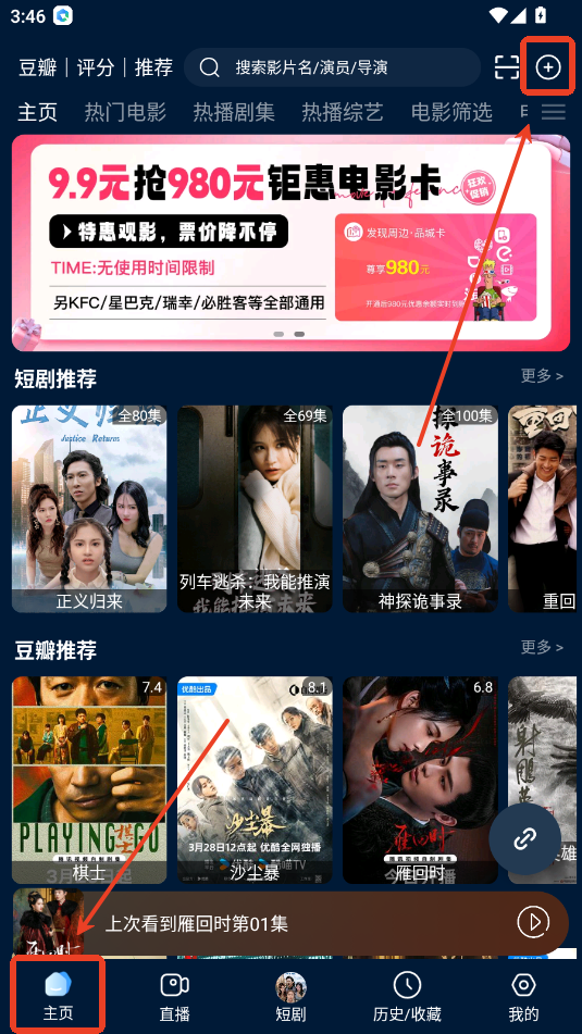 1.进入软件在主页的右上角点击“+”