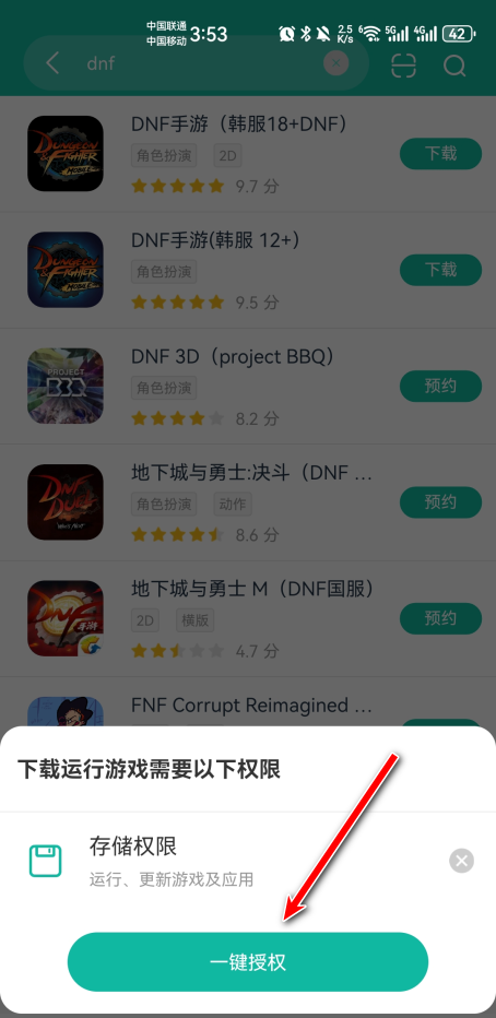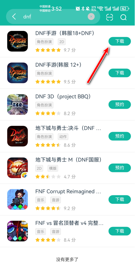 5.注册登录之后,可以在首页直接的搜索dnf,如下图所示,游戏右边显示下载的可以直接的下载畅玩。
