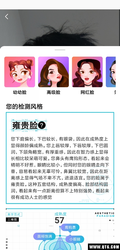 第四步,得出测试结果检测出来自己脸型属于什么样的脸,可以根据美学分析得出自己脸型是否好看。