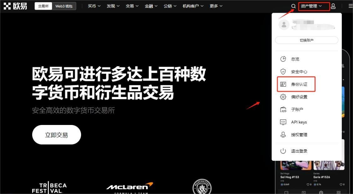 5.注册账号后需要进行身份认证才可进行交易,在首页找到“资产管理”——“身份认证”即可根据提示进行操作