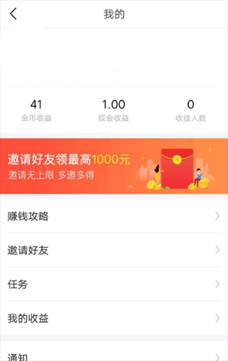 6、邀请好友填写你的邀请码,以后它每次阅读文章也会给你双倍的阅读金币,而且邀请好友还可以获取额外的1元奖励!