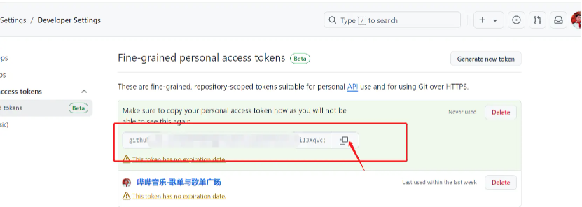 3.创建一个私钥,用于读写仓库,从而保存歌单到仓库中