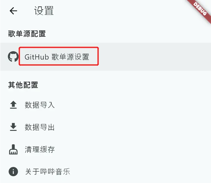 进入设置页,点击 Github 歌单源设置
