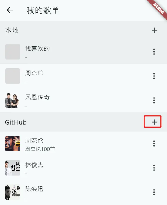 完成后在我的歌单中会显示 + 按钮,可以像本地歌单一样进行歌单操作