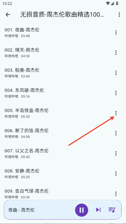 1.点击你要下载的歌曲右侧三个点按钮。