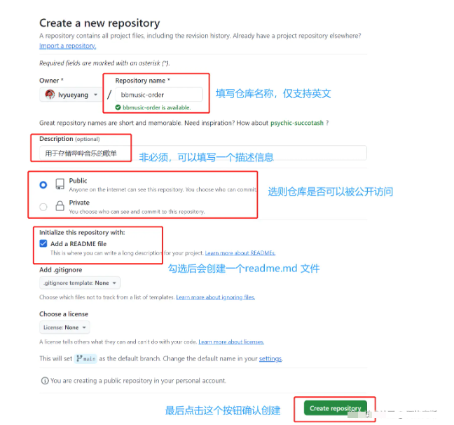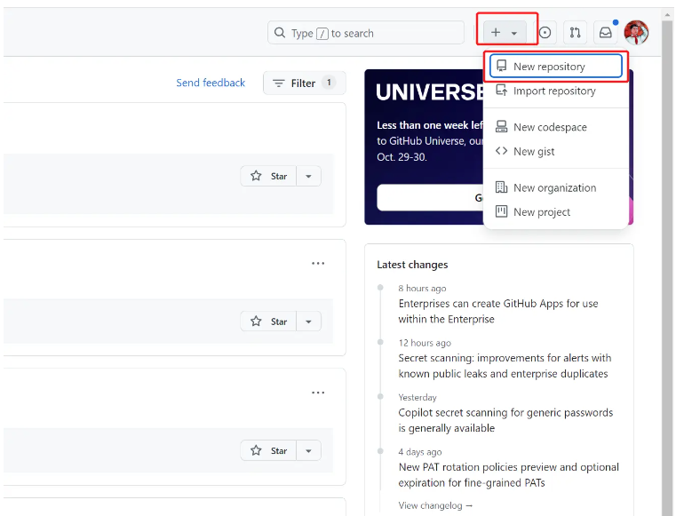 点击右上角的 +按钮,开始创建仓库
