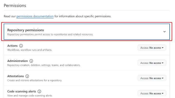点击 Permissions -> Repository permissions 展开权限列表