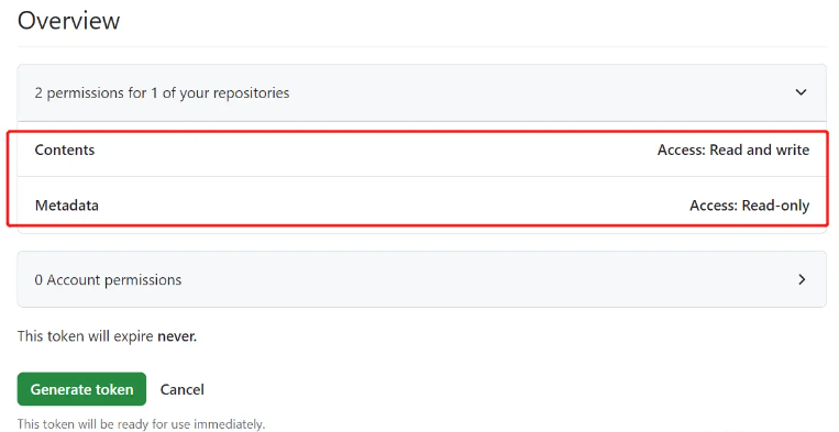 点击 Generate token 按钮确认创建