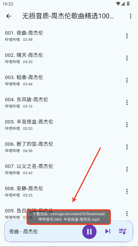 3.下载完成后,系统会提示哔哔音乐下载歌曲在哪个文件夹。