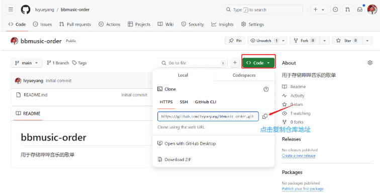 创建完成后复制仓库地址备用
