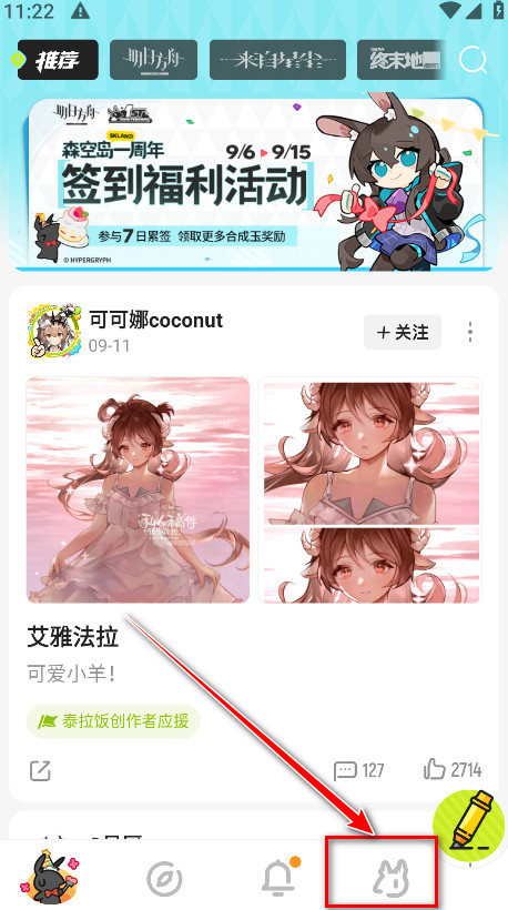 1.打开森空岛,点击右下角小图标。