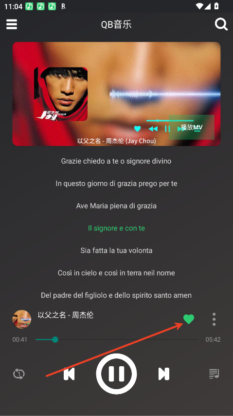在播放界面点击“喜欢”,把喜欢的歌曲加入其中,方便随时播放。