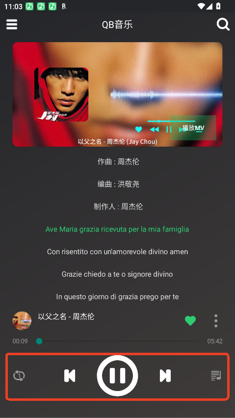 你可以在播放界面控制音量、播放暂停、跳转到下一首或上一首。
