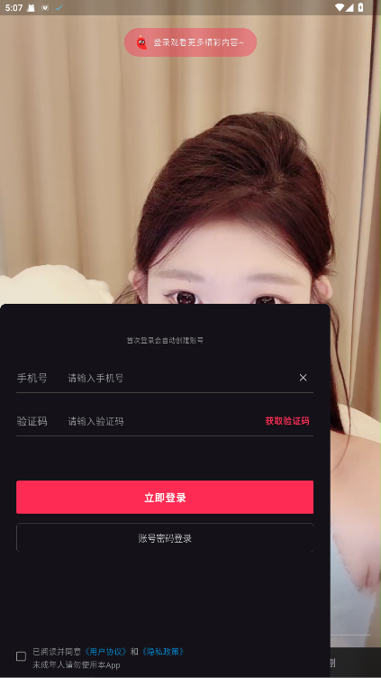 2.输入手机号获取验证码,立即登录