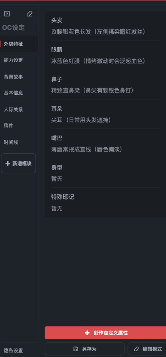 饼次元app是一款专为创作者设计的APP。它的优点是能让你告别散乱的笔记,一站式管理所有创作设定。它能帮助你清晰规划人物的时间线和世界观,让你的创作井井有条。这个软件能让你的角色设定完美展现,是创作者的得力助手。可以把人物的图像和设定都放进去,还能规划他们的时间线,甚至连世界观都能轻松搭建。最酷的是,它还有外派互动玩法,让我们的角色能活过来。