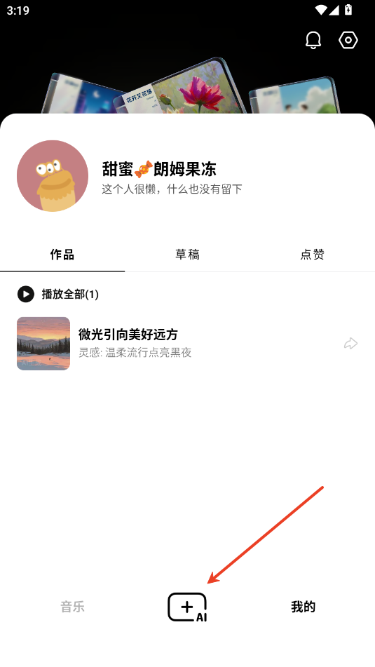 1、首先用户在海绵音乐app中生成好音乐后先保存在自己的作品页面中