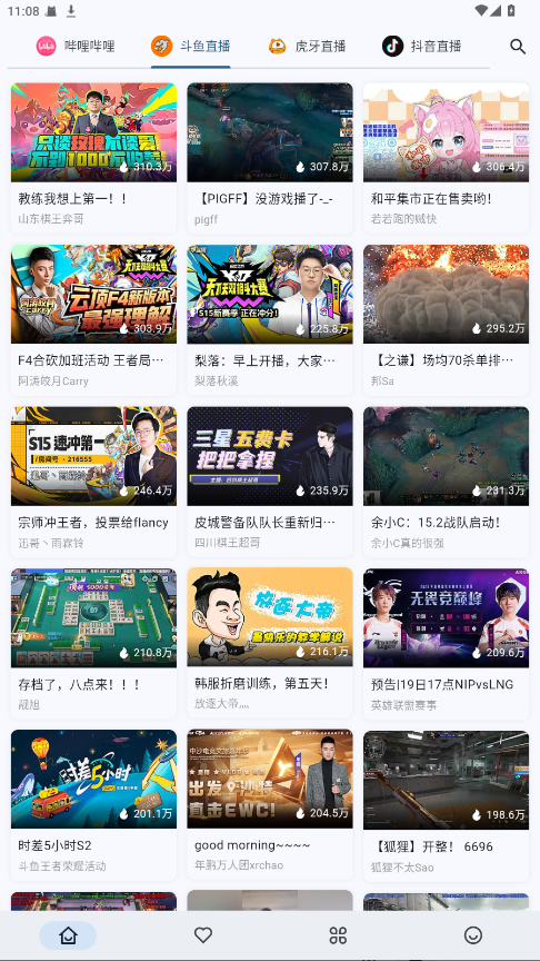 2.支持哗哩哗哩、虎牙、斗鱼、抖音四大平台,点击即可切换。