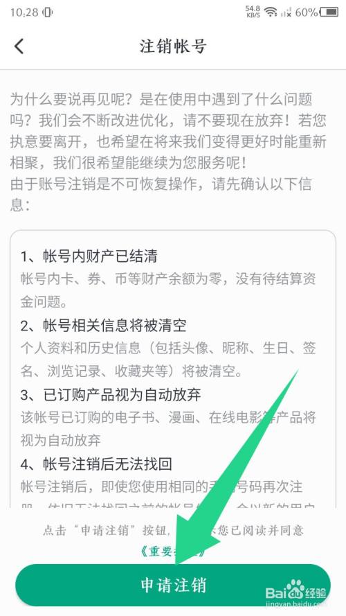 在注销页面,点击底部的申请注销。