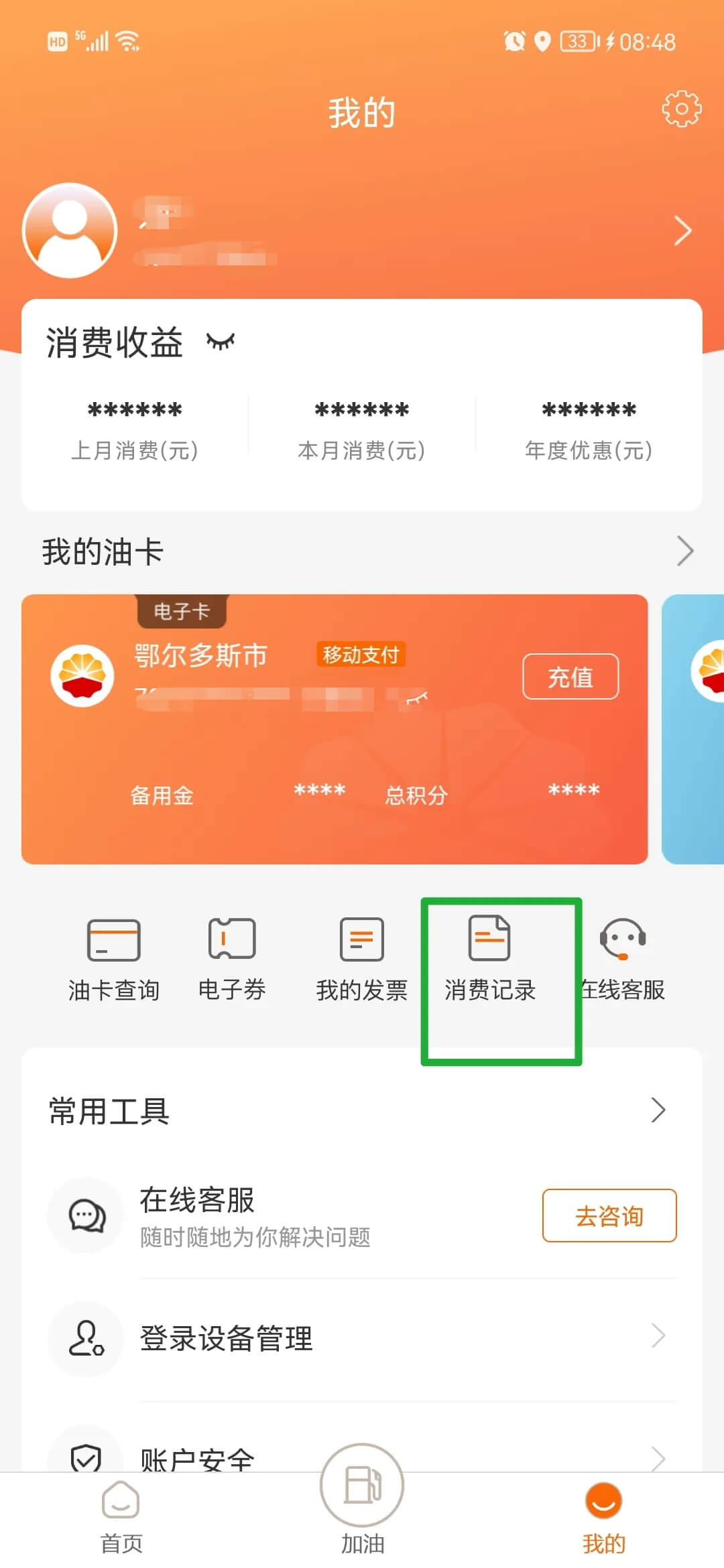 第一步:进入手机APP中油好客e站,点击右下角“我的”;