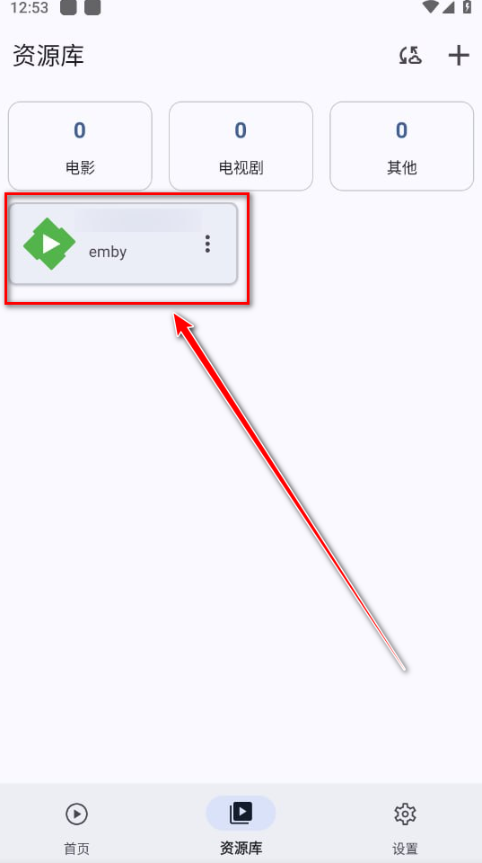 5.如下图所示获取资源库成功,点击emby。