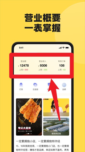 3、登录成功后进入首页,可在顶部清晰查看营业额、收入和订单量的经营概况数据。