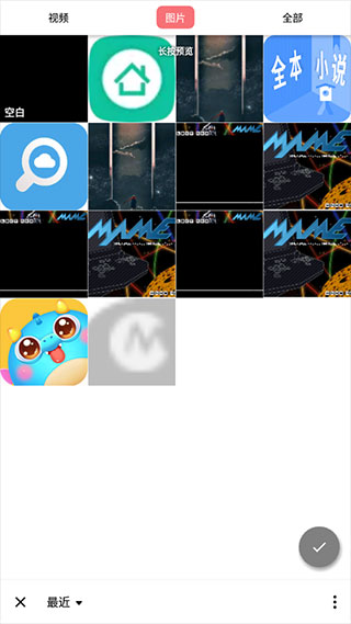 4、返回编辑页面,点击上方的文字,就能切换图片或视频列表