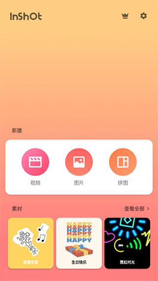 1、下载安装InShot视频和照片编辑软件,打开该软件,进入软件首页