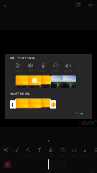 3、可以根据页面的提示,进行视频编辑操作,再点击下一步